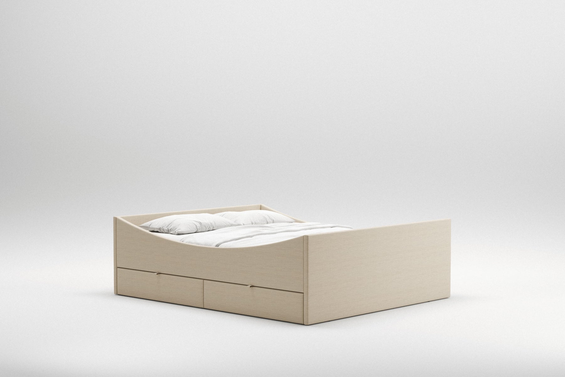 Curved Bed Frame w. 2 Drawers | Light Beige