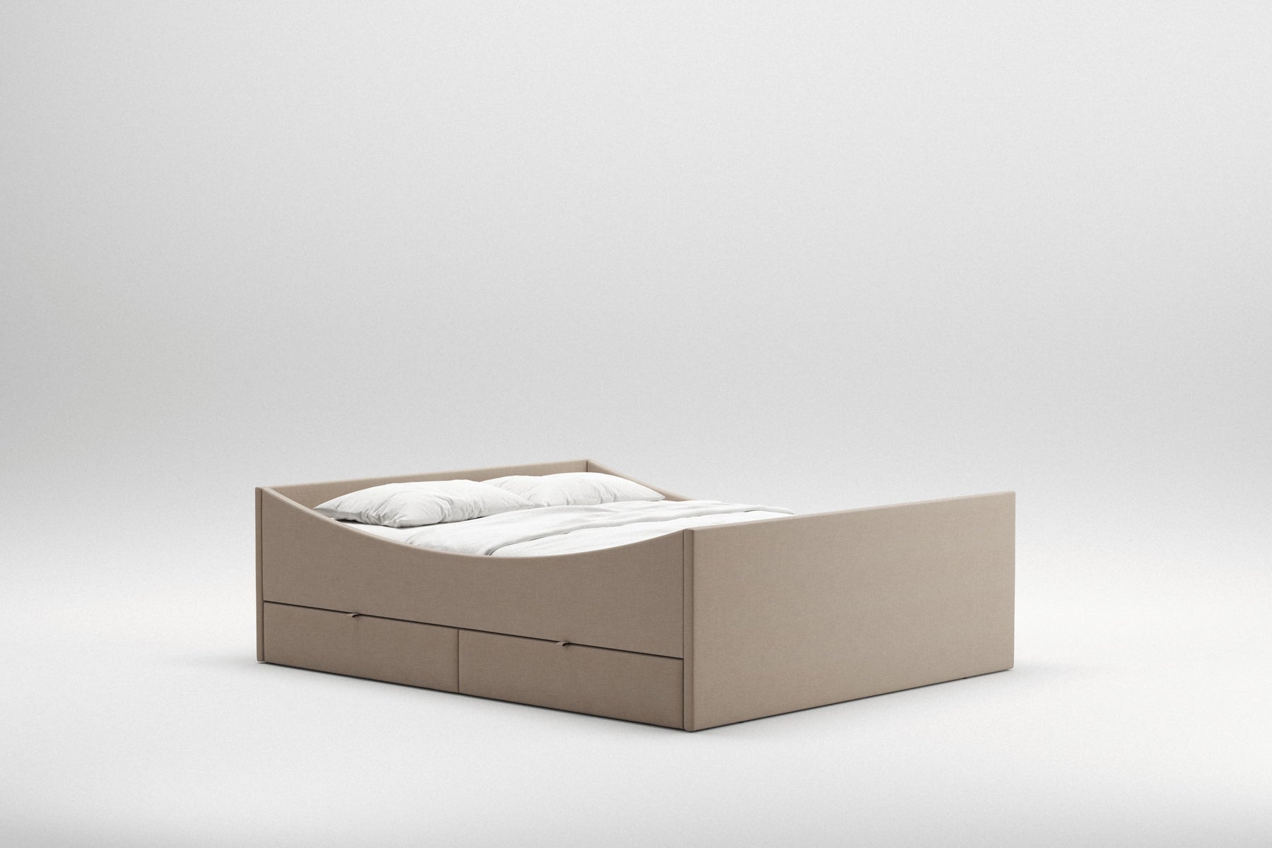 Curved Bed Frame w. 2 Drawers | Dark Beige