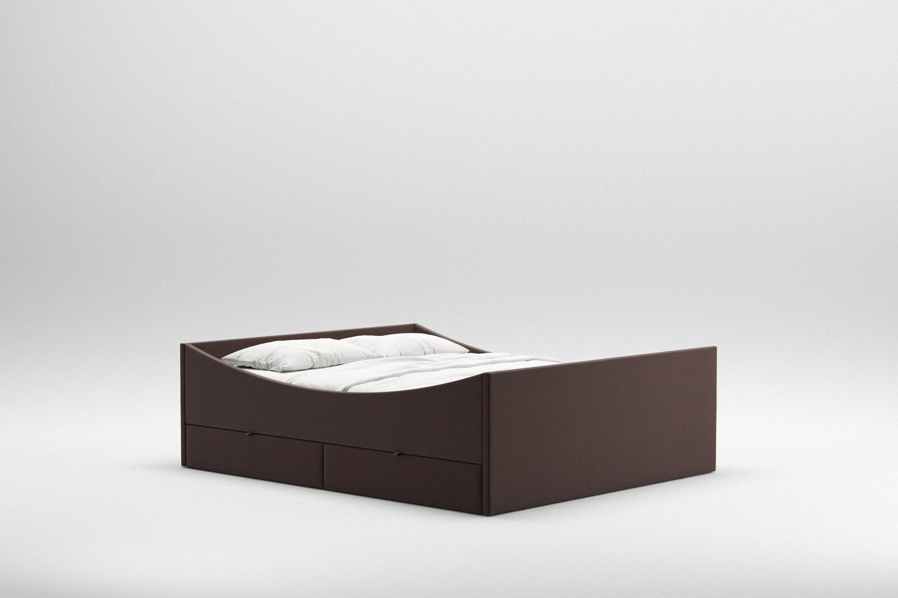 Curved Bed Frame w. 2 Drawers | Dark Brown