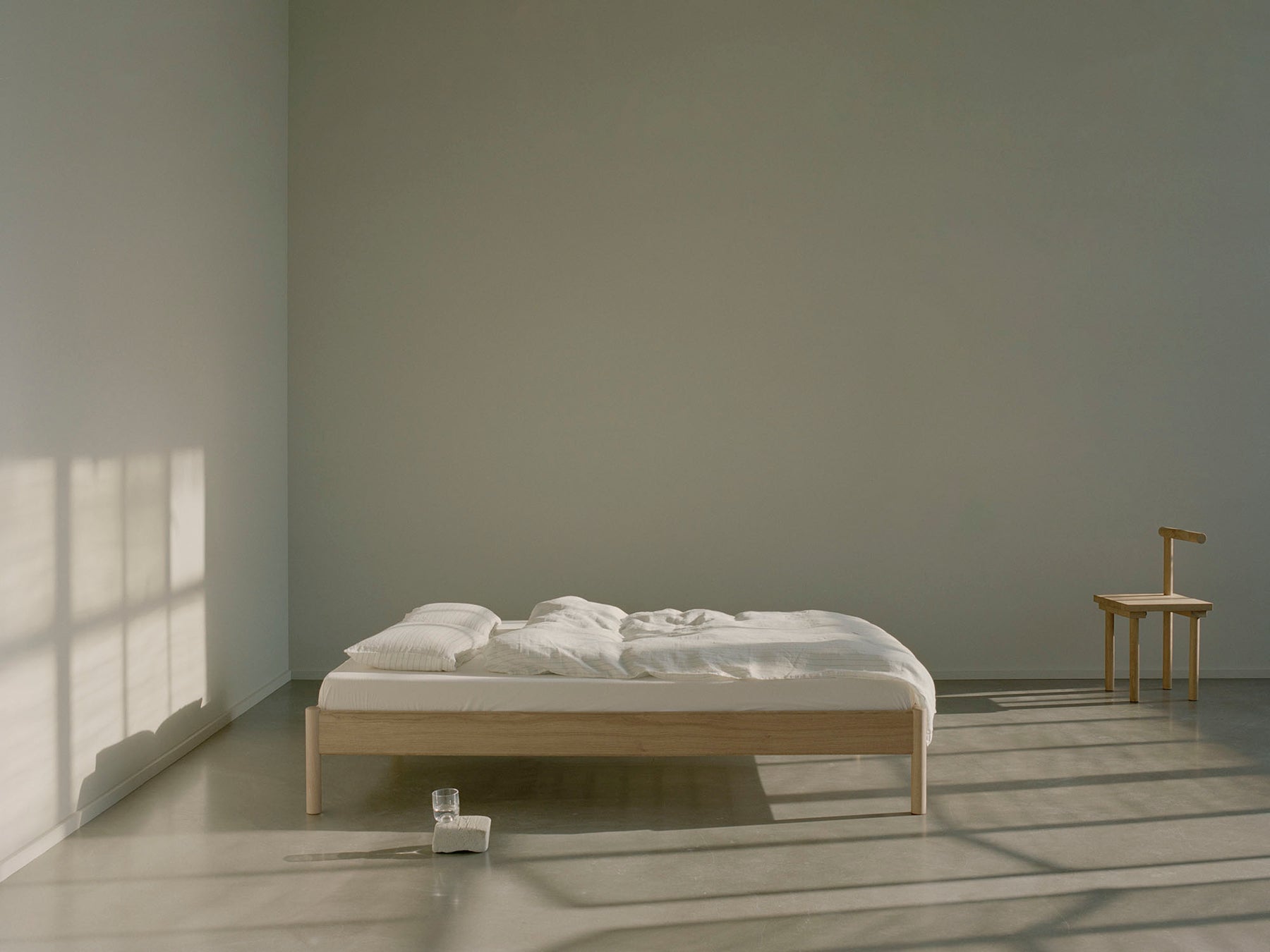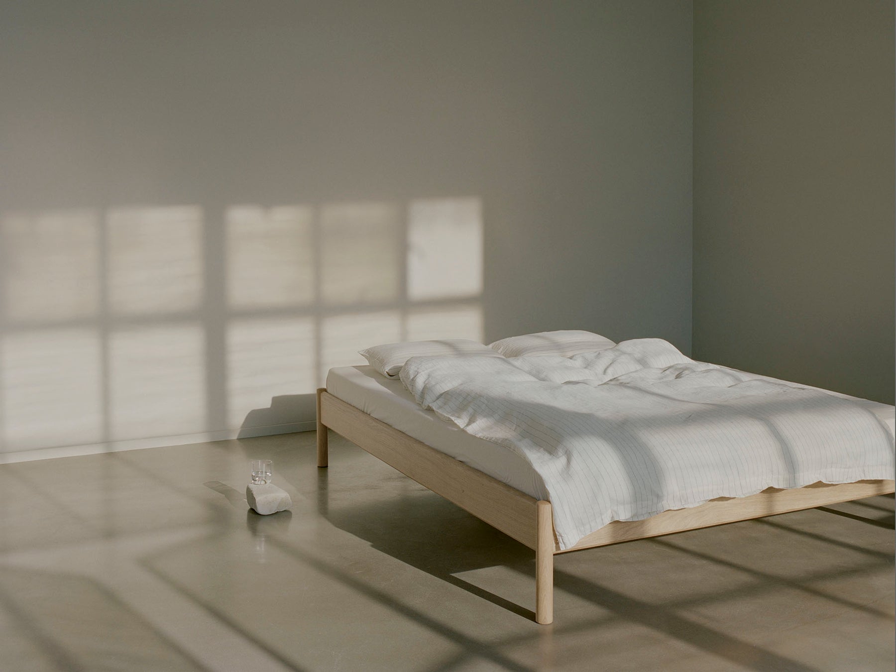 The Alken Bed Frame ex Headboard is derived from the prize-winning Alken Bed Frame. Exploring material simplicity, the design is aimed to establish a discrete refuge for the night. The bed is crafted from solid oak wood and shaped with subtle rounded edges, creating a grounding calmness within the domestic space.