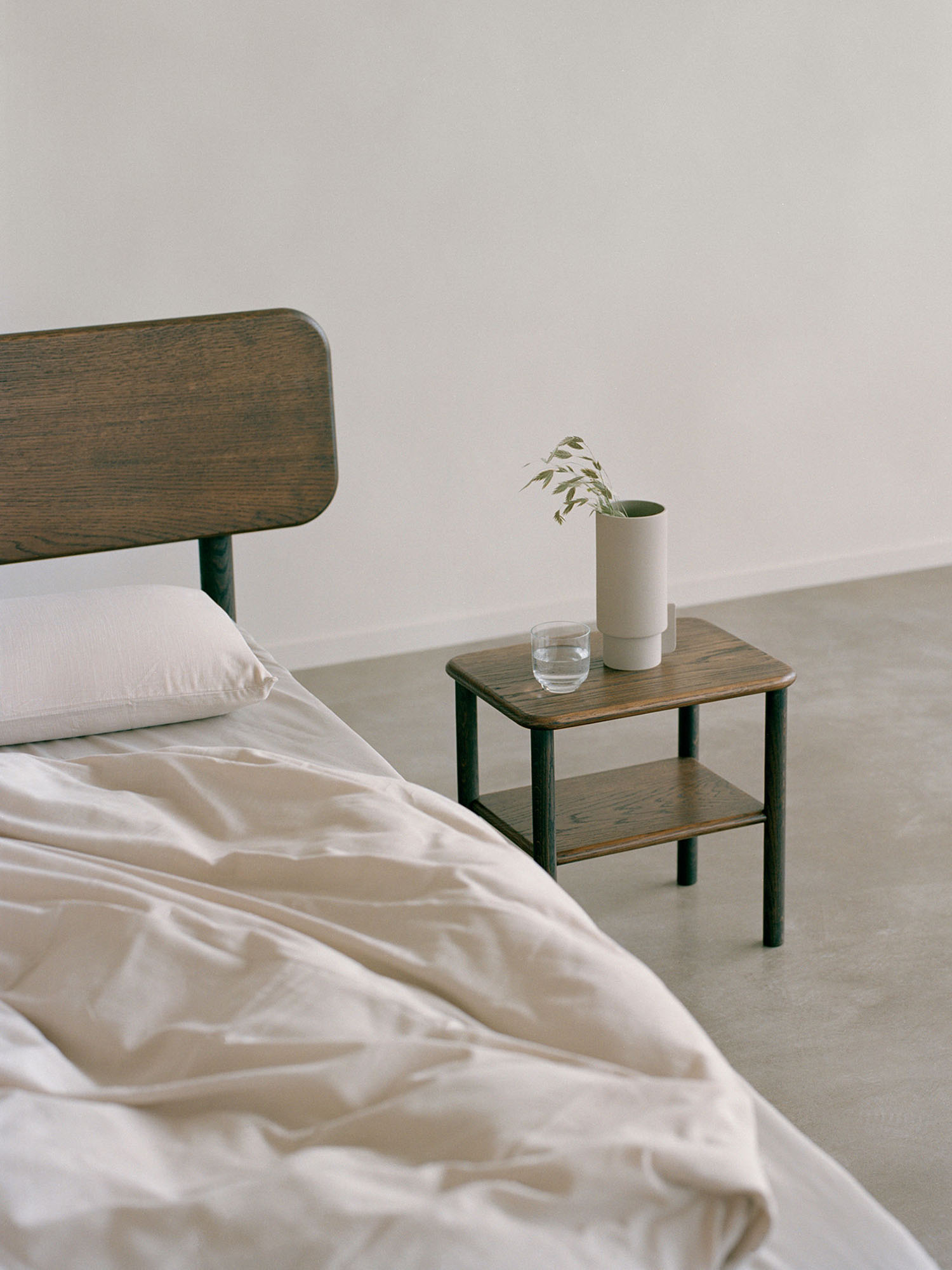 Created as a subtle backdrop for storing the nights-essentials, the Alling Side Table provides a sense of discretion for the bedroom. With its rounded edges the simple profile creates an organic surface which is suitable both as a table and stool.