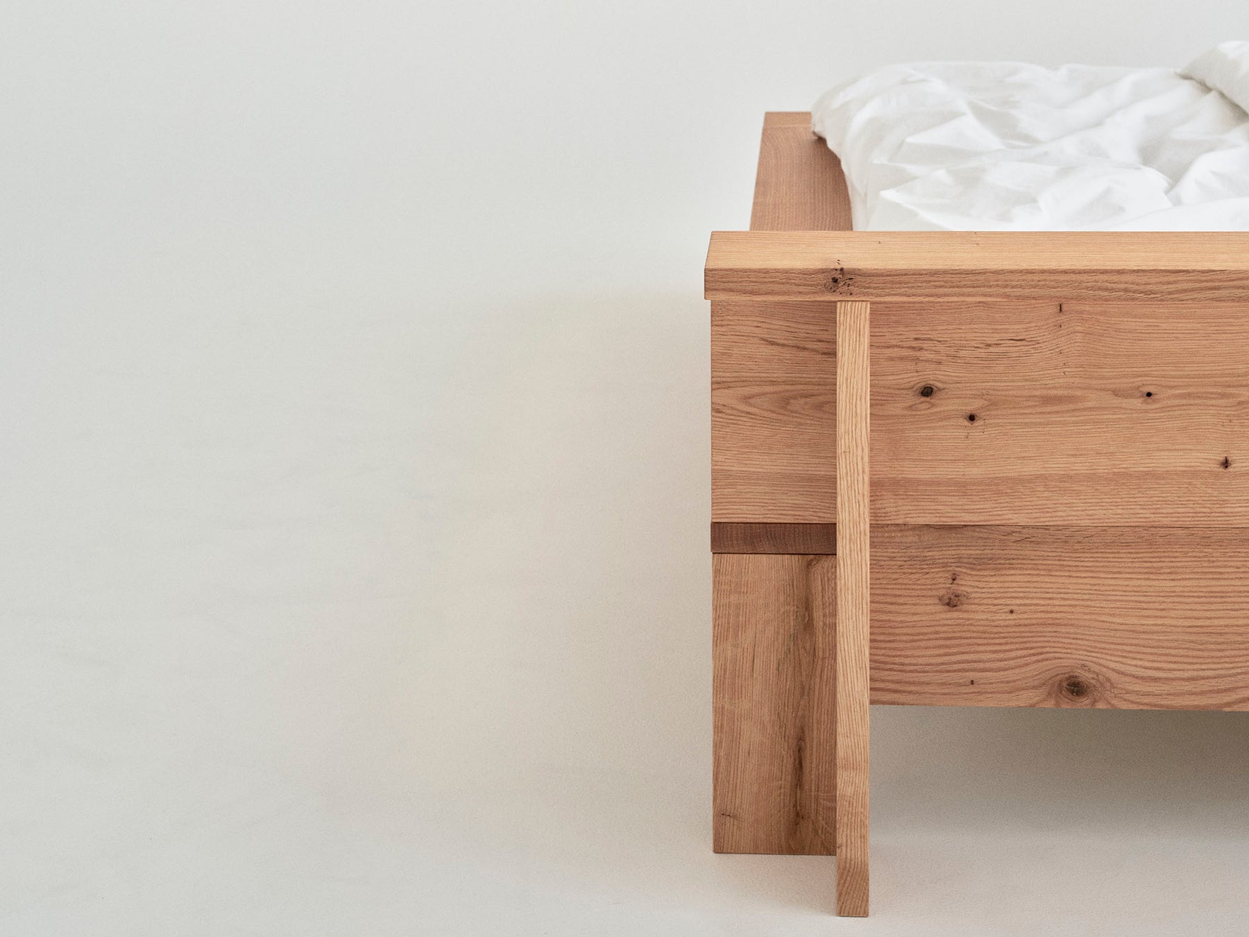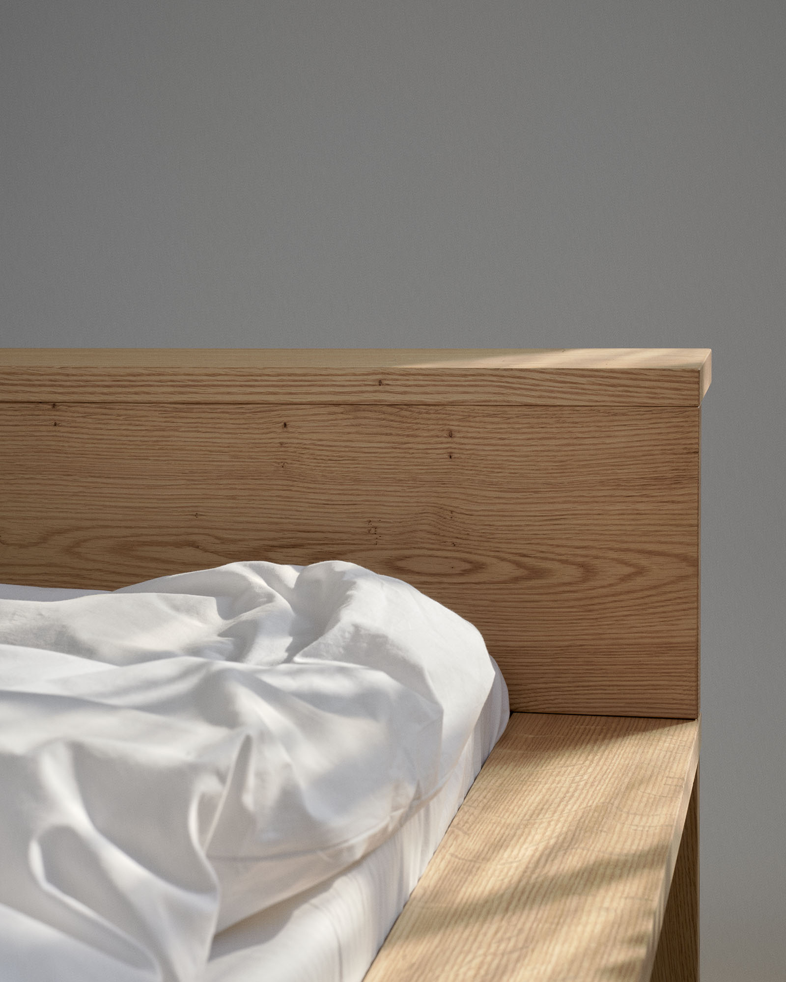 The Hem Bed Frame is a sculptural centerpiece for the bedroom, masterfully crafted from solid red oak. Designed by Nikolaj Lorentz Mentze, founder of Studio 0405, the bed follows an architectural principle of stacking, which lets the piece of furniture beautifully integrate layers of natural diversity. As patterns of grain run through each element of oak wood, sequences of distinctiveness emerge, capturing nature in its most immediate presence.