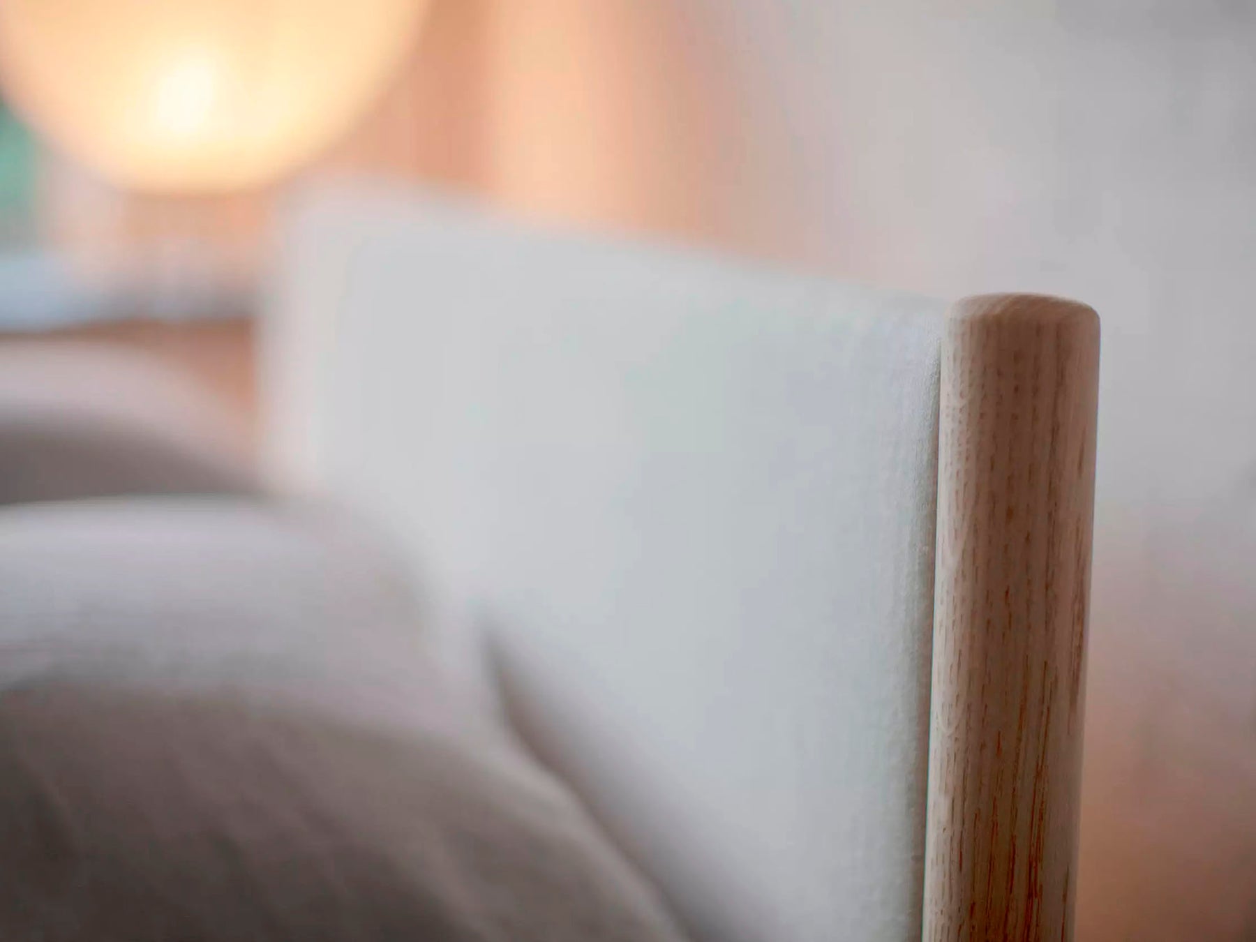 Designed by Oliver and Lukas WeissKrogh, the Veng Bed Frame presents a reimagination of the traditional upholstery bed. Outlined by a lower profile the bed frame features a linen textile, whose inviting tactility is complimented by bed posts of solid oak wood, subtly anchoring the framework.